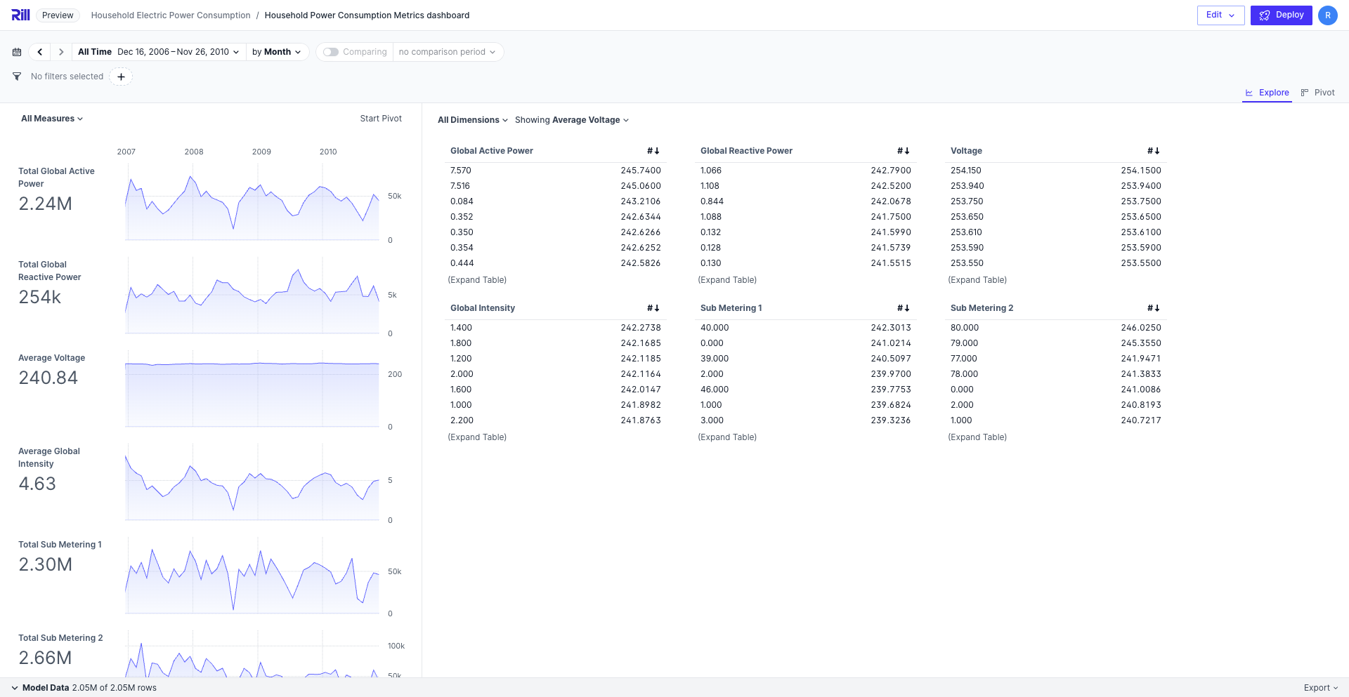 In the case that you need to view more granular values of your data, you can set the decimal places to whatever value you need. In the above example, we are setting the average voltage measure to 4 decimal places to get a more accurate representation for each dimension.