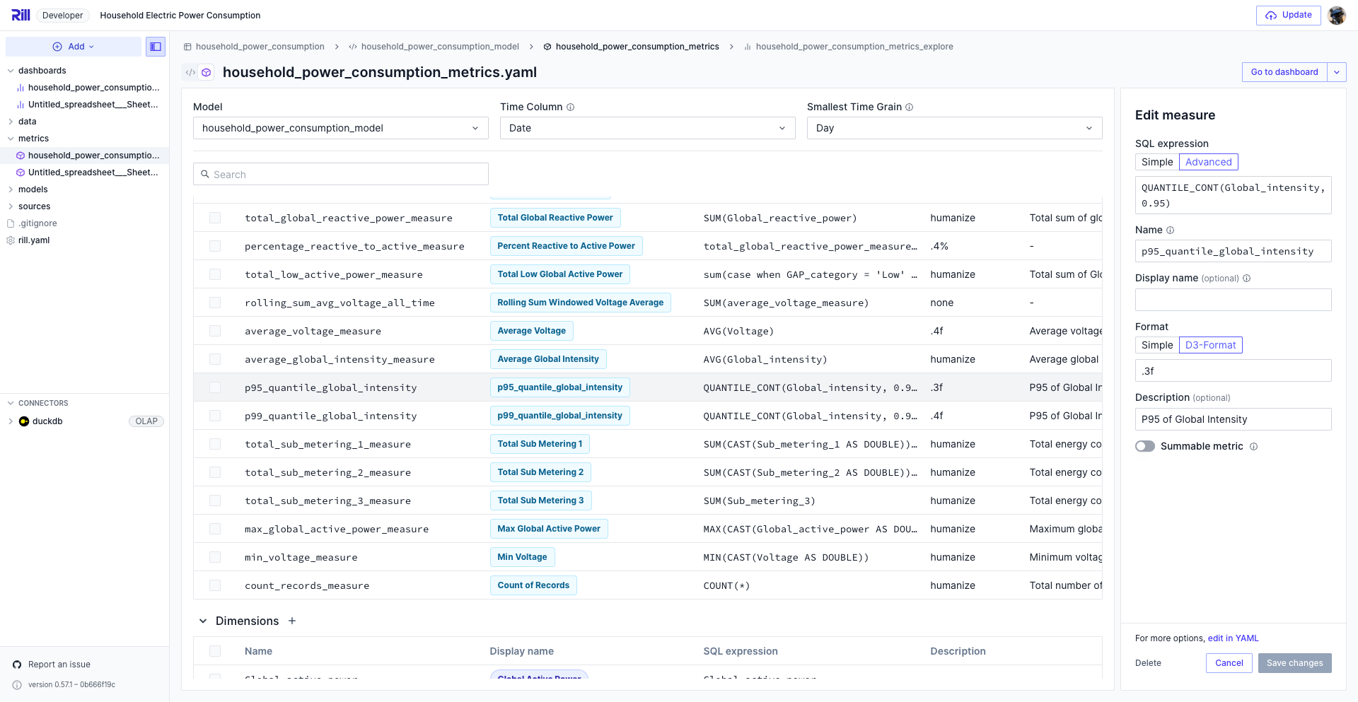 In addition to common aggregates, you may wish to look at the value of a measure within a certain band or quantile. In the example below, we can measure the P95 of a given measure using QUANTILE_CONT.
